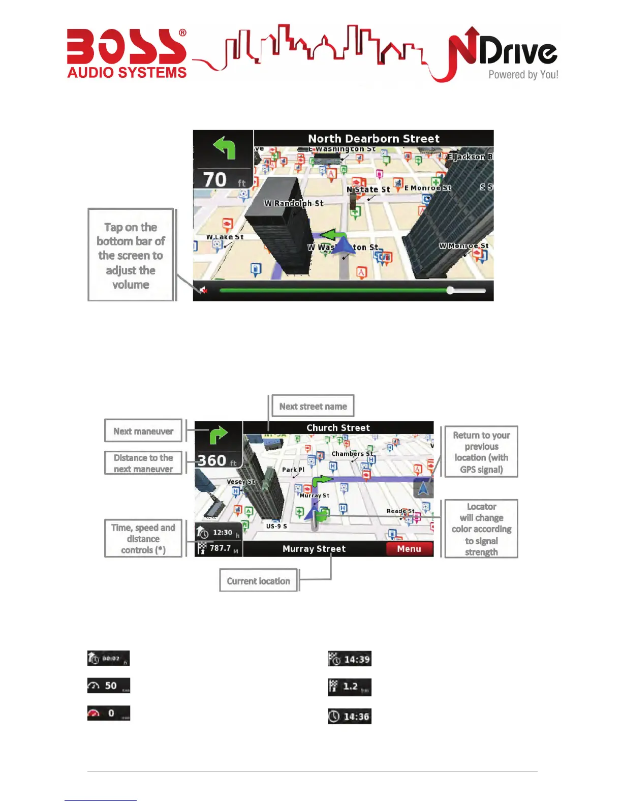 (*) – Time, speed and distance controls show different information, by toggling among the