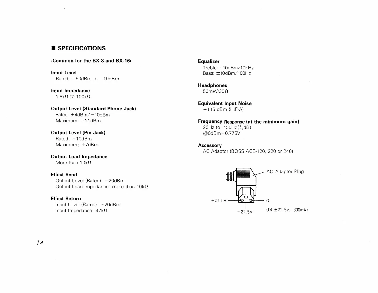 Boss BX-8 - Specifications; Input and Output Characteristics; Effect, Equalizer, and Headphone Specs