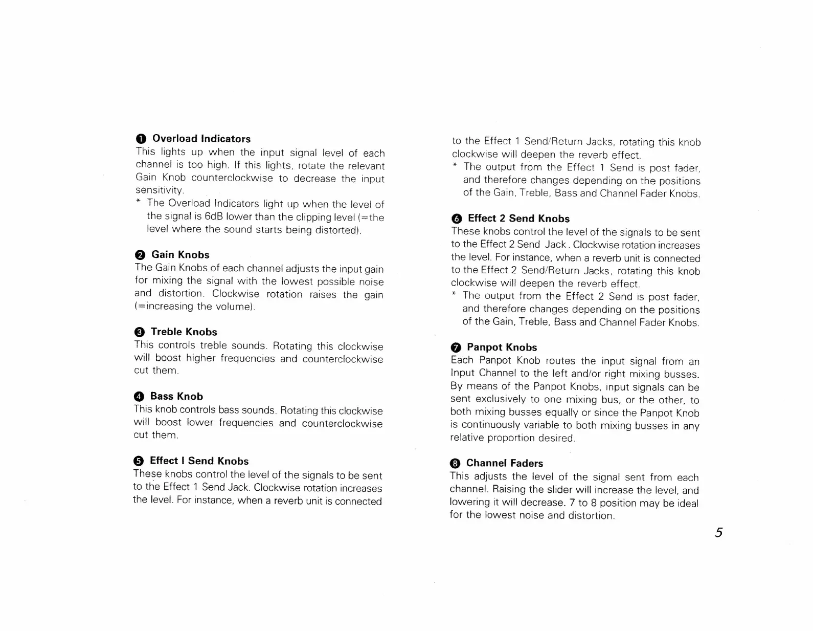 Boss BX-8 - Overload Indicators; Gain Knobs; Treble and Bass Knobs; Effect Send;Return Controls