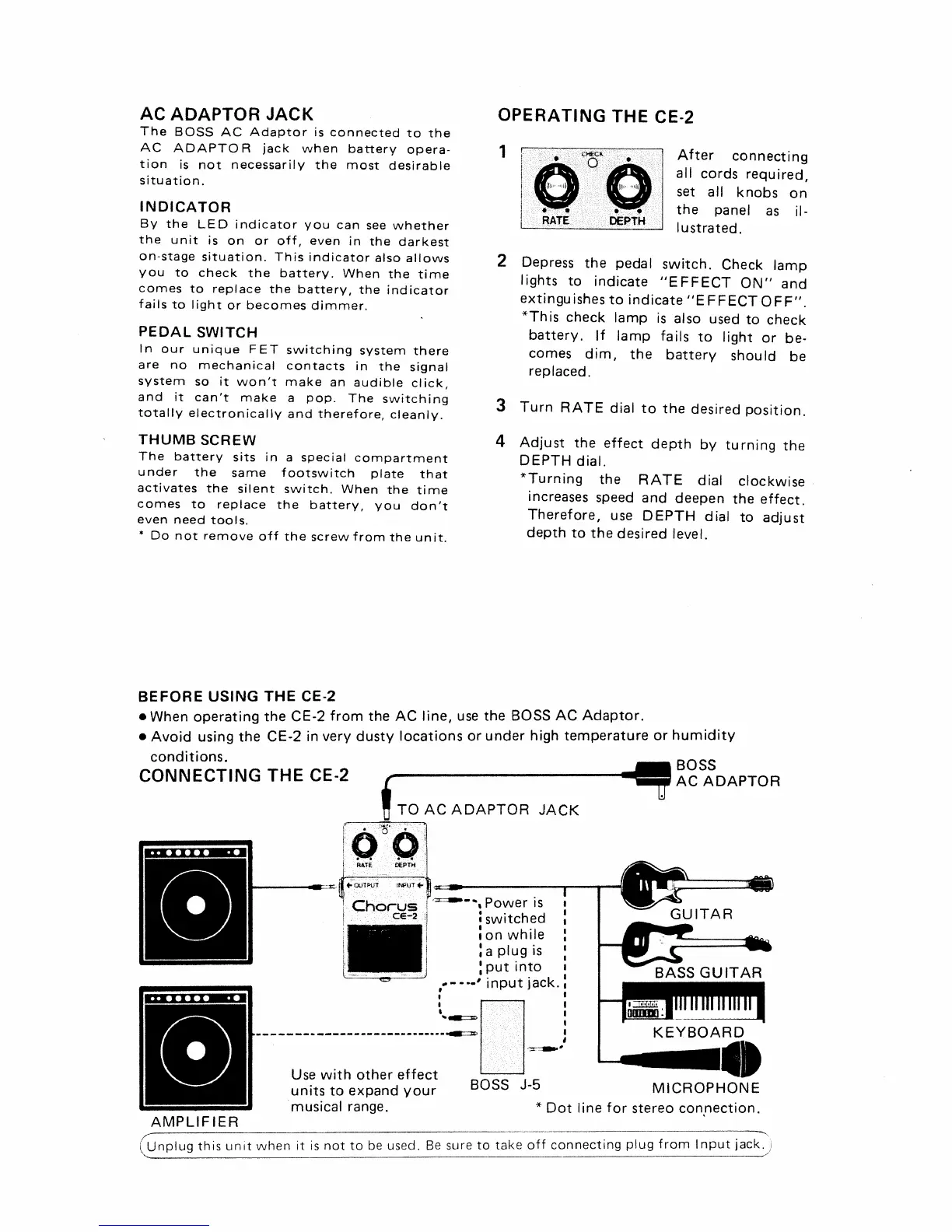 Boss CE-2 Chorus - OPERATING THE CE-2; BEFORE USING THE CE-2; CONNECTING THE CE-2