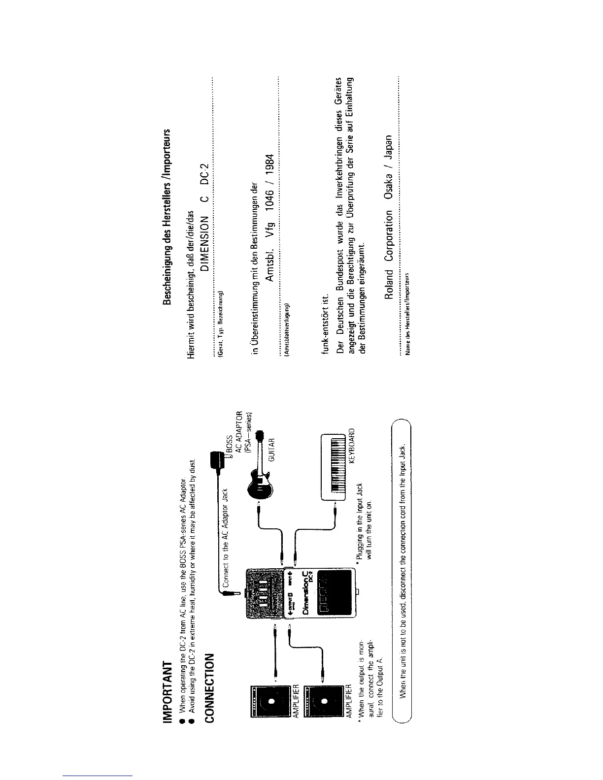 Boss DC-2 - Connection; AC Adaptor Connection; Input;Output Connections