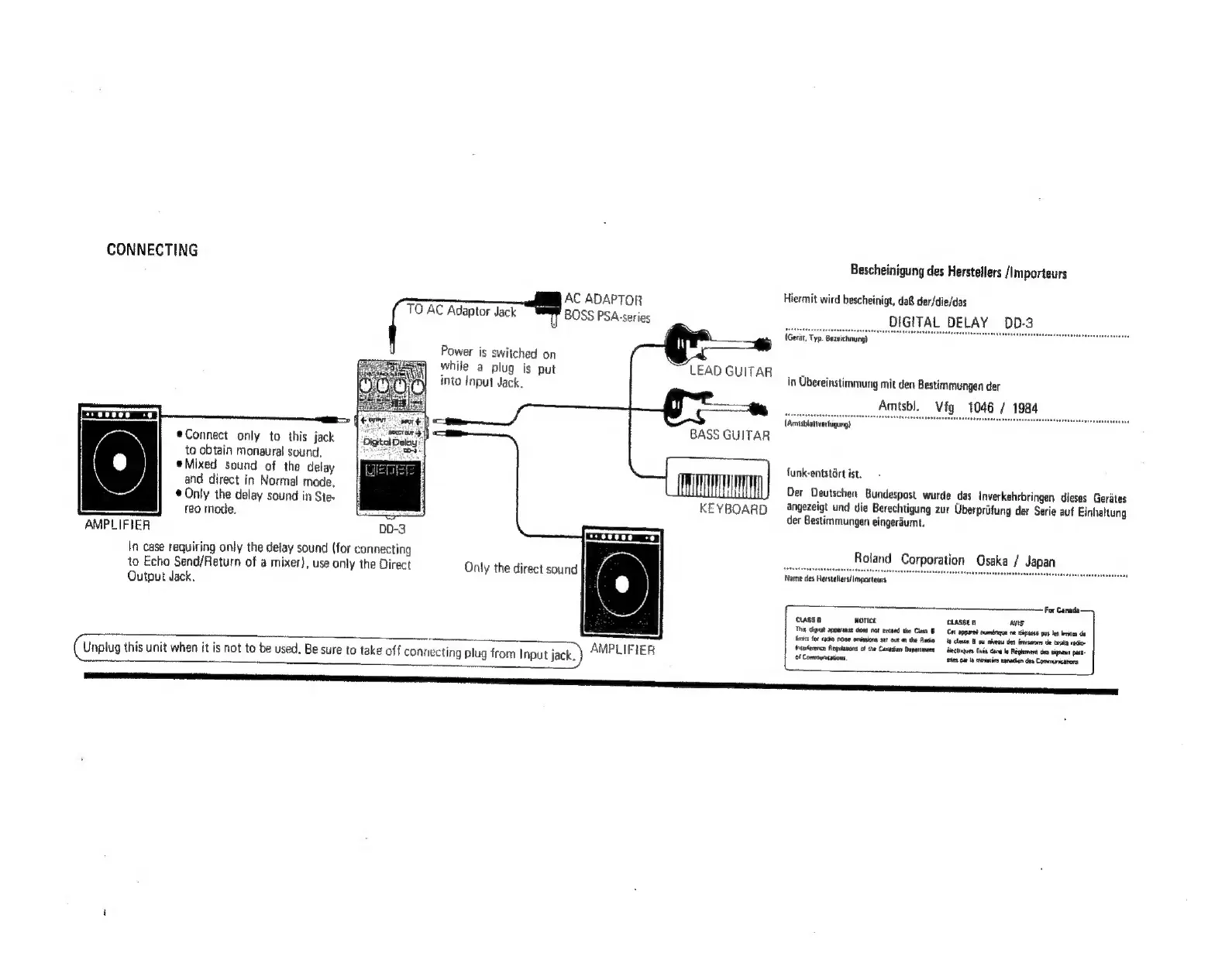 Boss DD-3 Digital Delay - Connecting the DD-3; Mono and Stereo Connections; Delay-Only Output