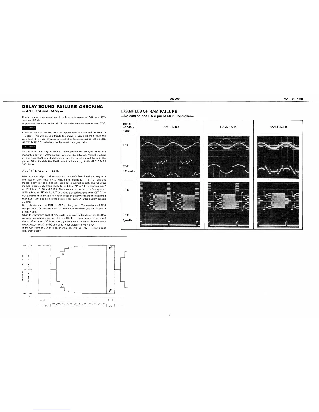 Boss DE-200 - Delay Sound Failure Checking; A;D, D;A and RAMs; All 1 & All 0 Tests; Examples of RAM Failure