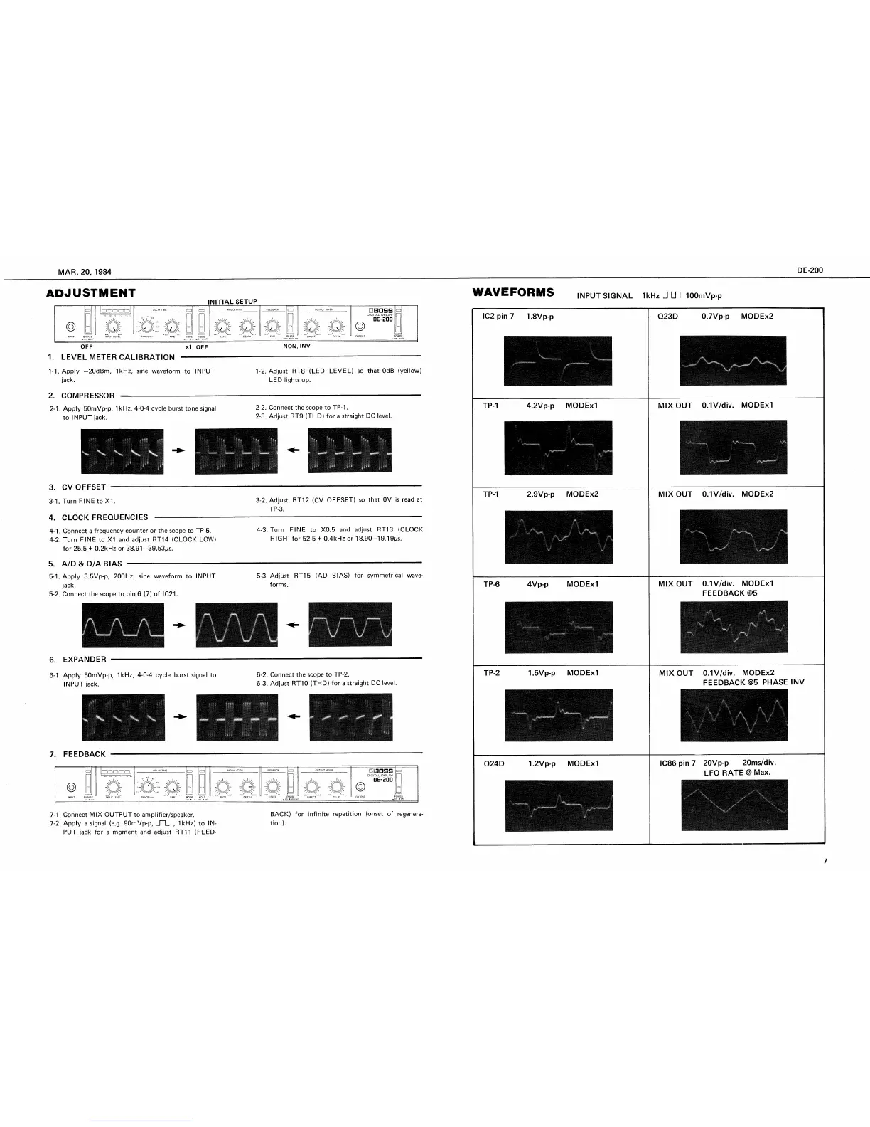 Boss DE-200 - Adjustment; Level Meter Calibration; Compressor; CV Offset