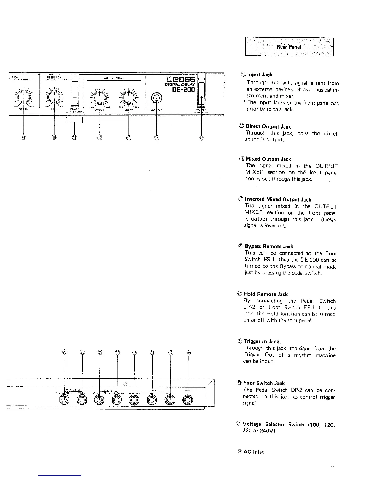Boss Digital Delay DE-200 - Rear Panel Connections