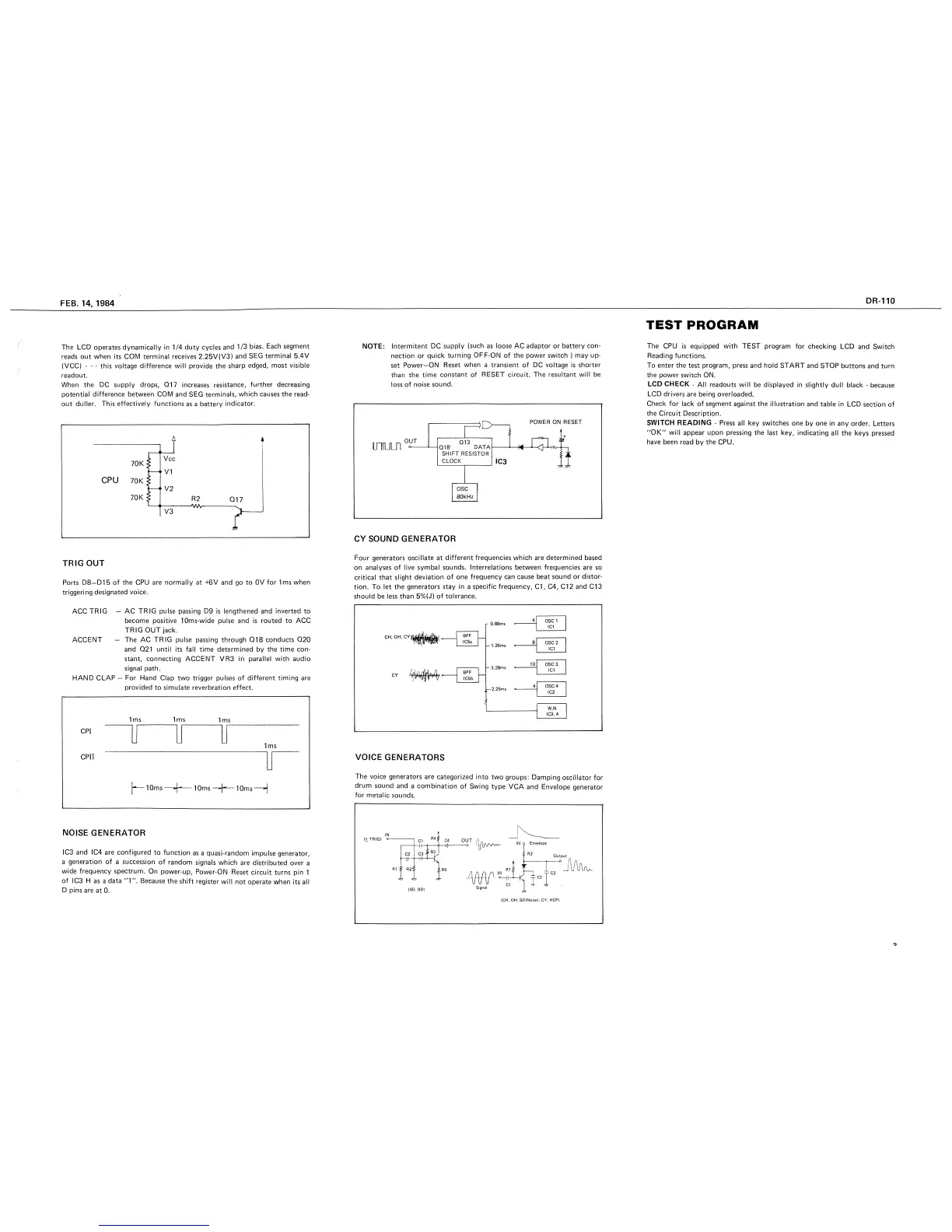 Boss DR-110 - LCD Operation and Power on Reset; Voice Generators; Test Program