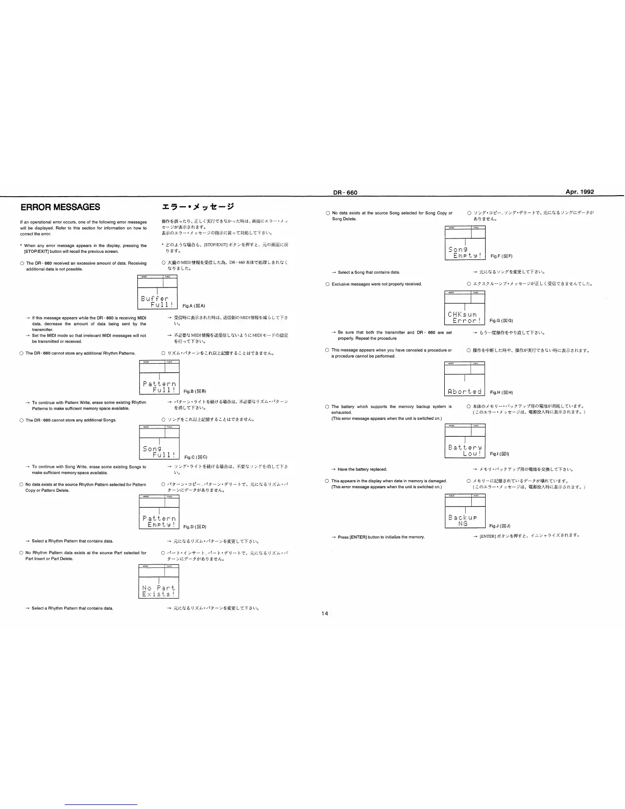 Boss DR-660 - Error Message Handling; Error Messages and Solutions