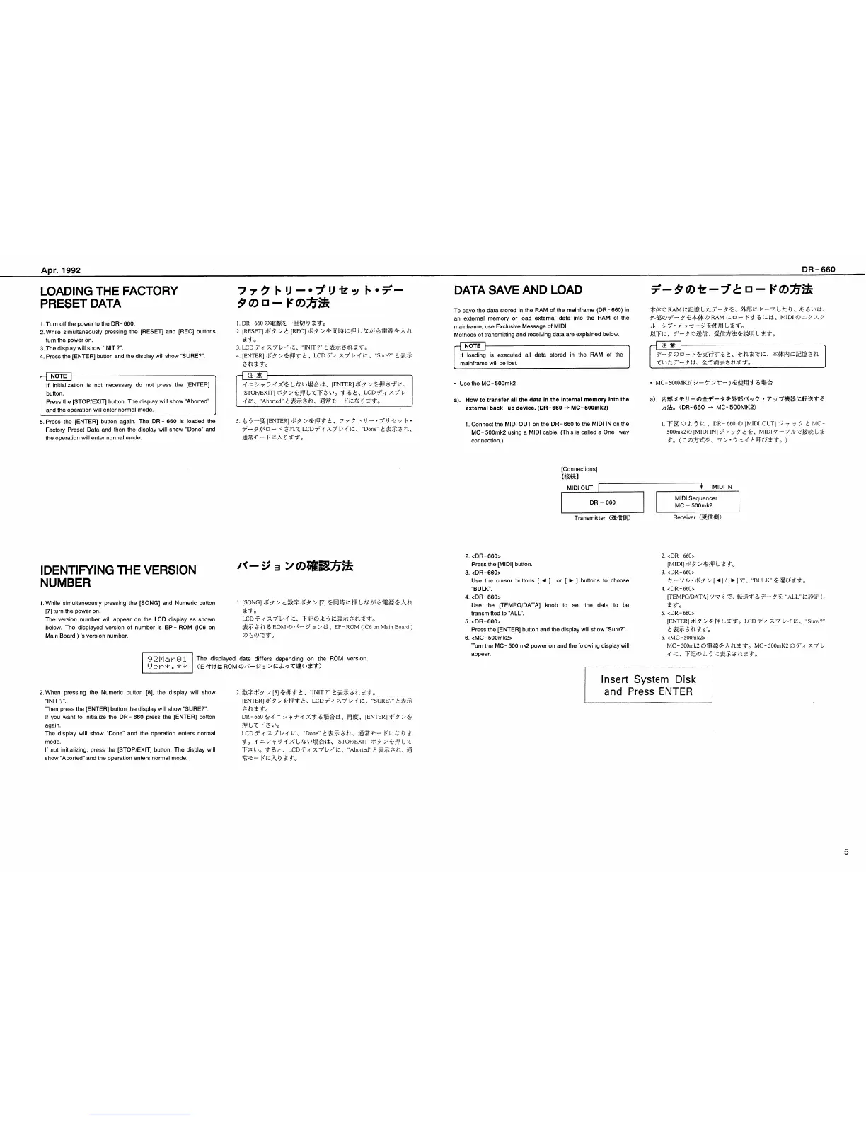 Boss DR-660 - Operational Procedures; Loading Factory Preset Data; Data Save and Load via MIDI