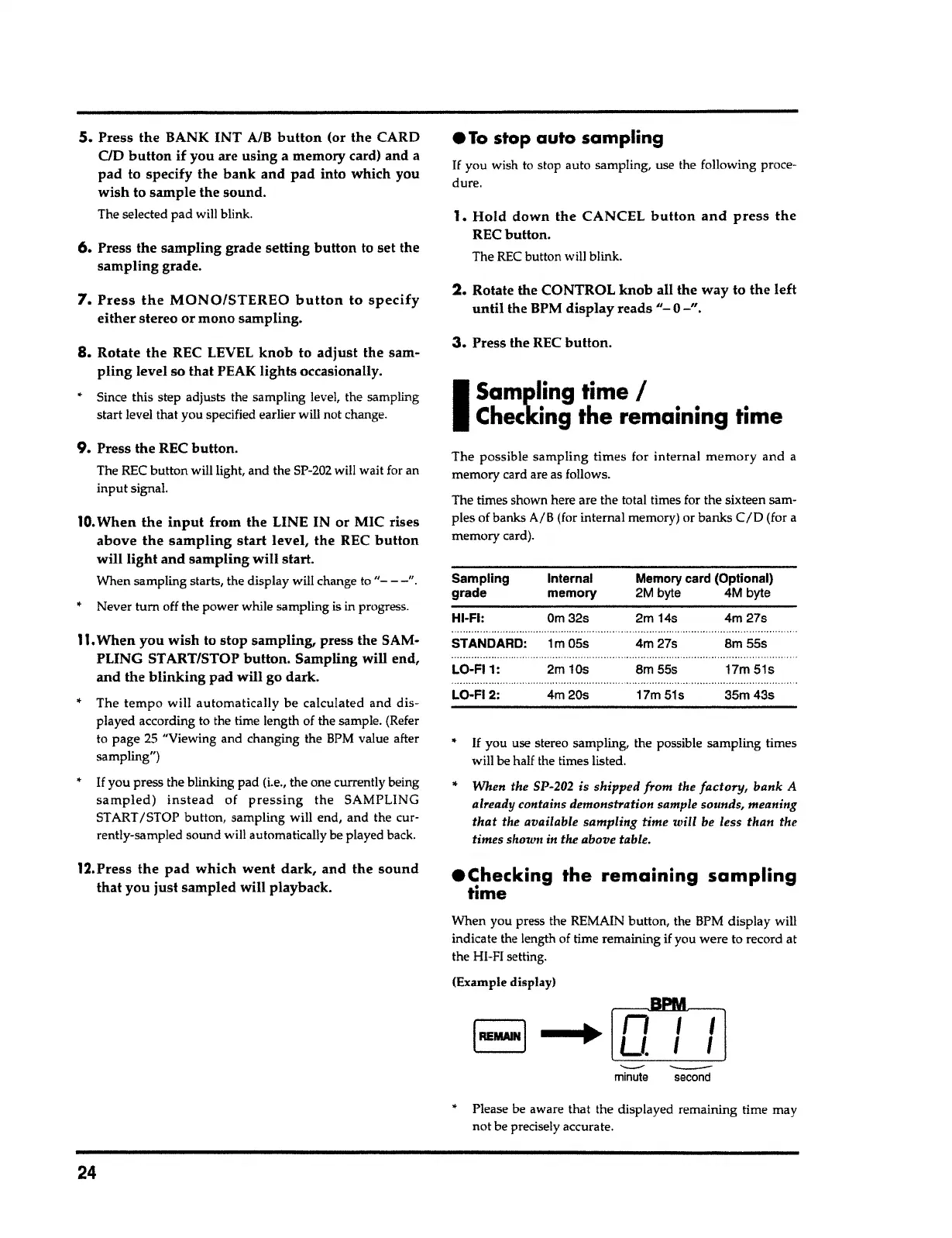 you wish to stop auto sampling, use the following proce-