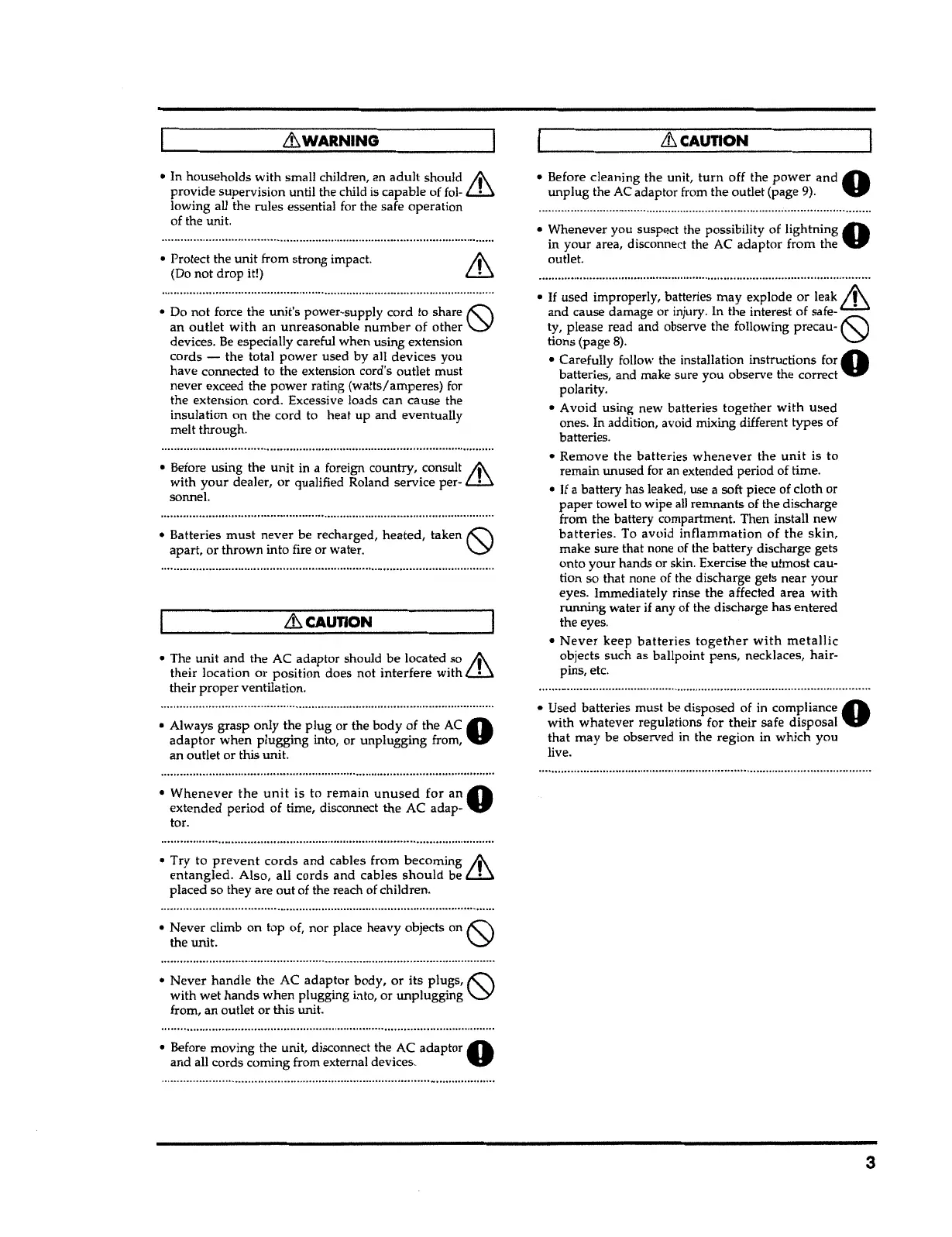 • Before moving the unit, disconnect the AC adaptor