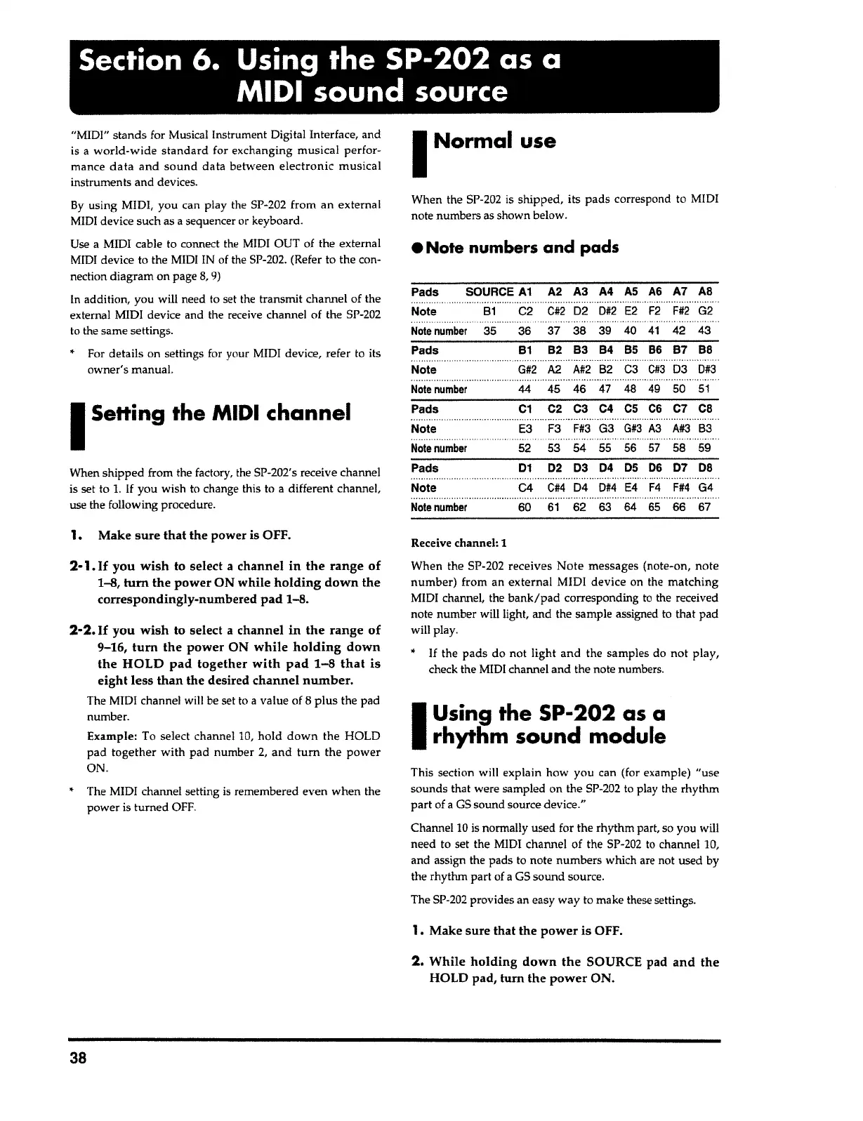 external MIDI device and the receive channel of the SP-202