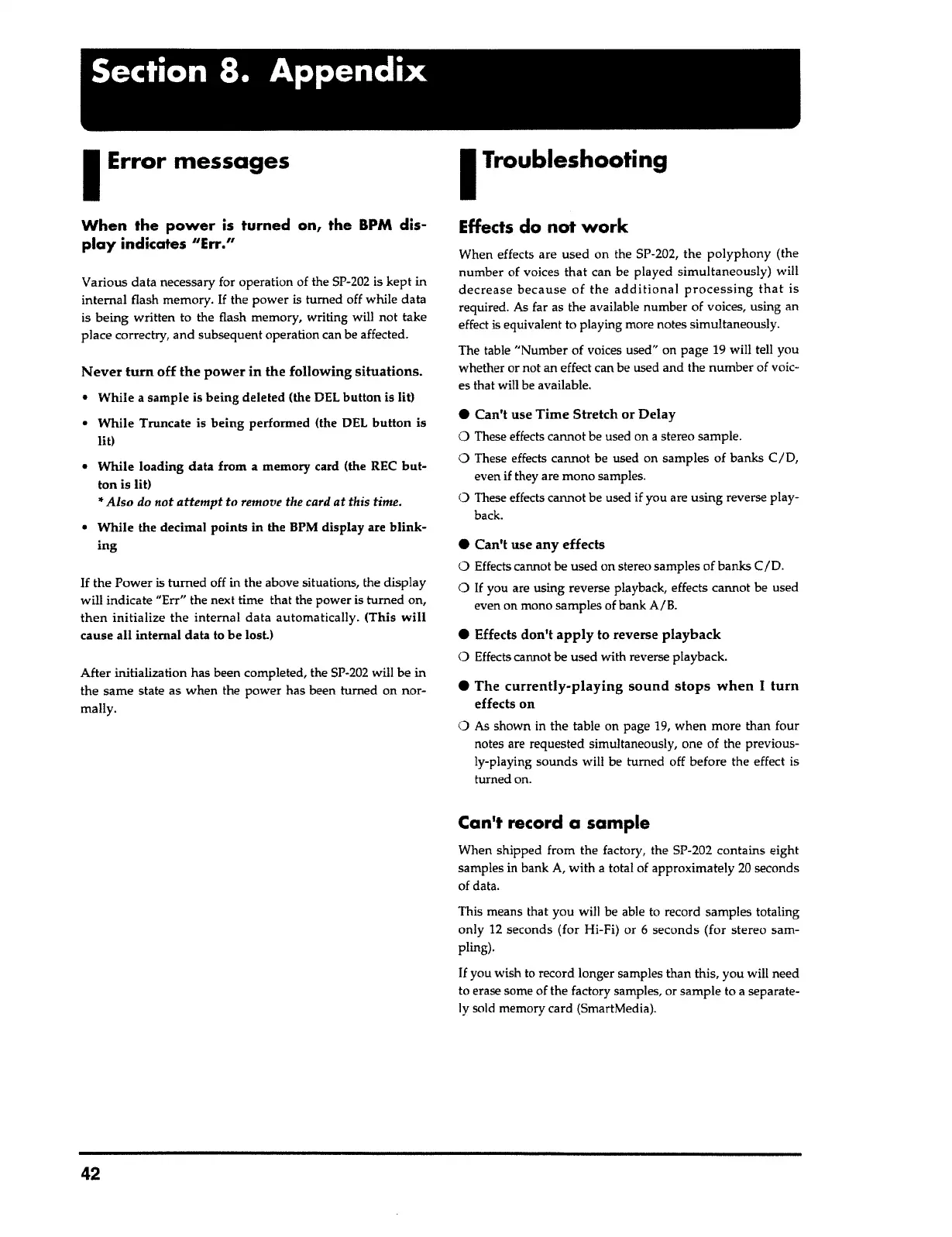 • Can't use any effects
