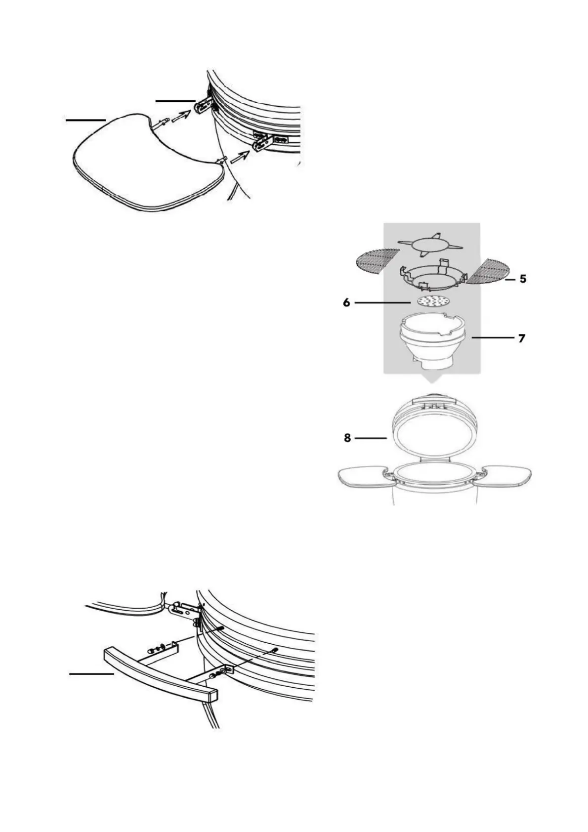 Add the Firebox (7), Charcoal Plate (6), and the Cooking