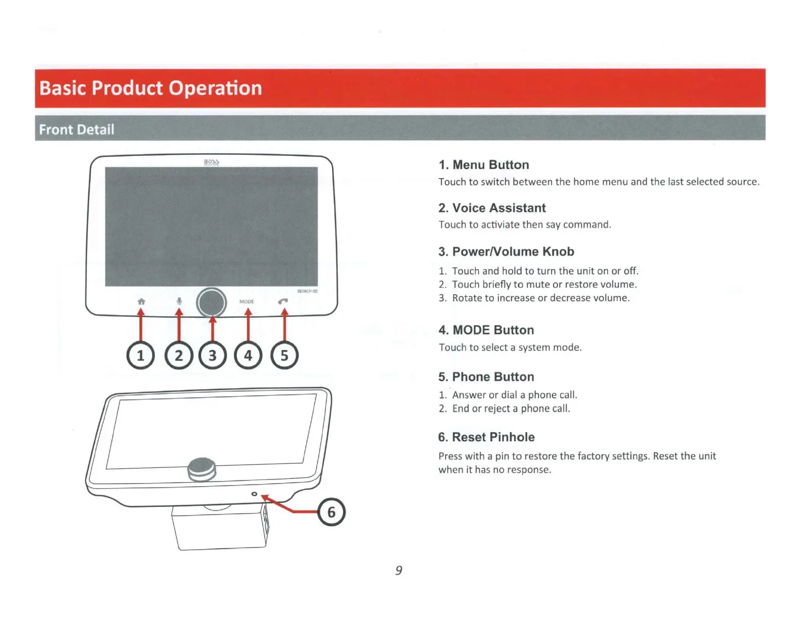 Boss ELITE BE7ACP-SD - Front and Rear Panel Details