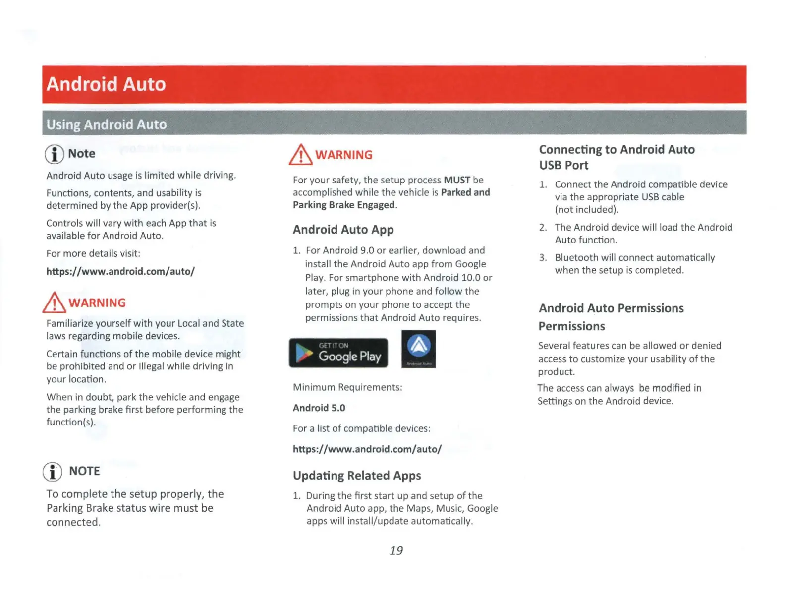 Android Auto requires.