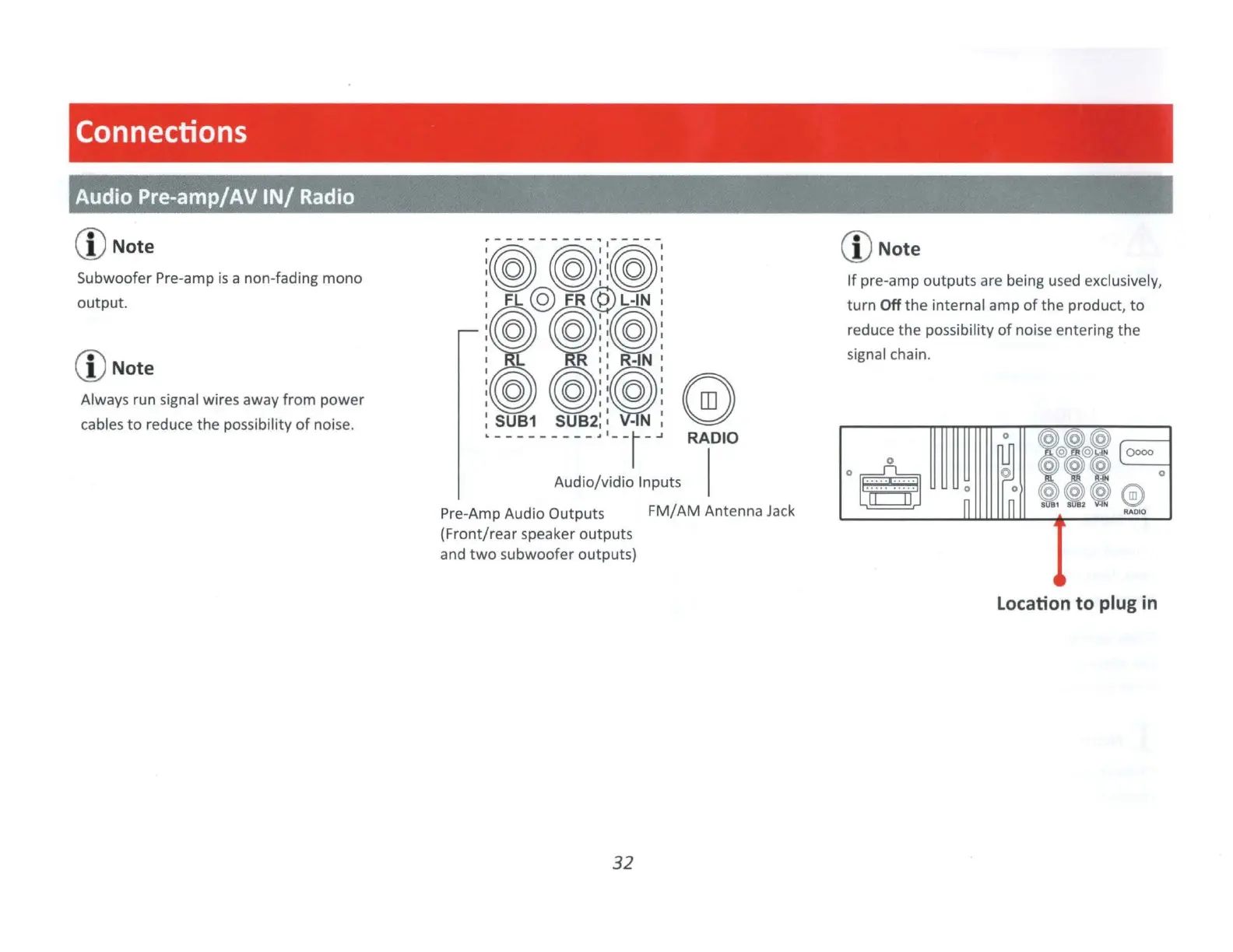 -Amp Audio Outputs FM/AM Antenna