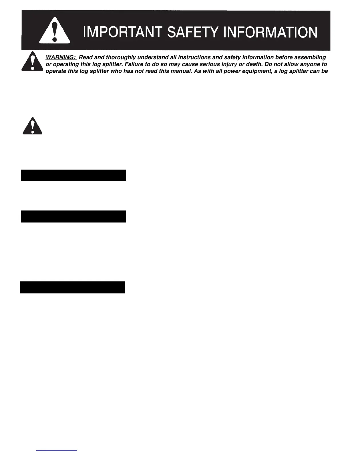 operate this log splitter who has not read this manual. As with all power equipment, a log splitter can be