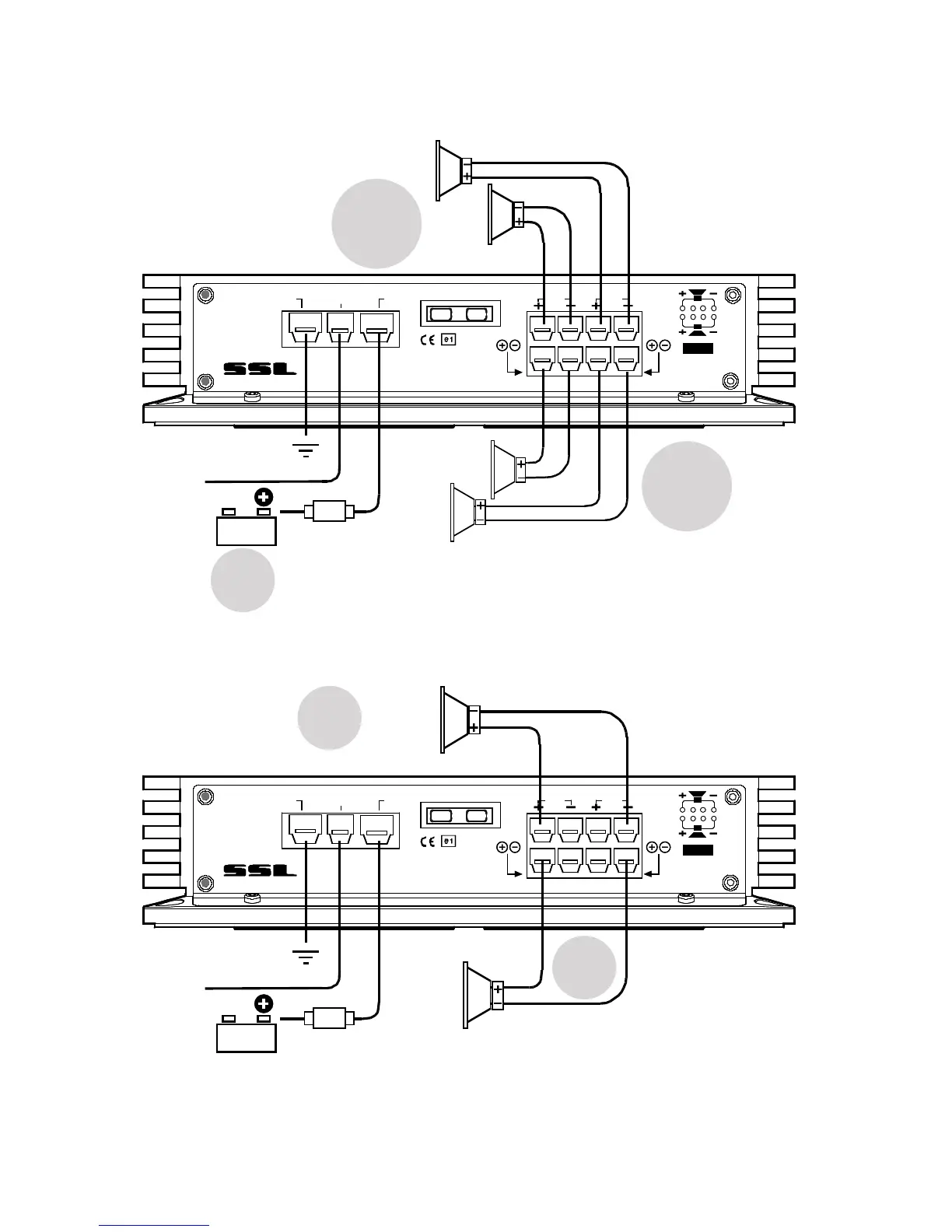 Connect the Positive (+) terminal of the LEFT subwoofer