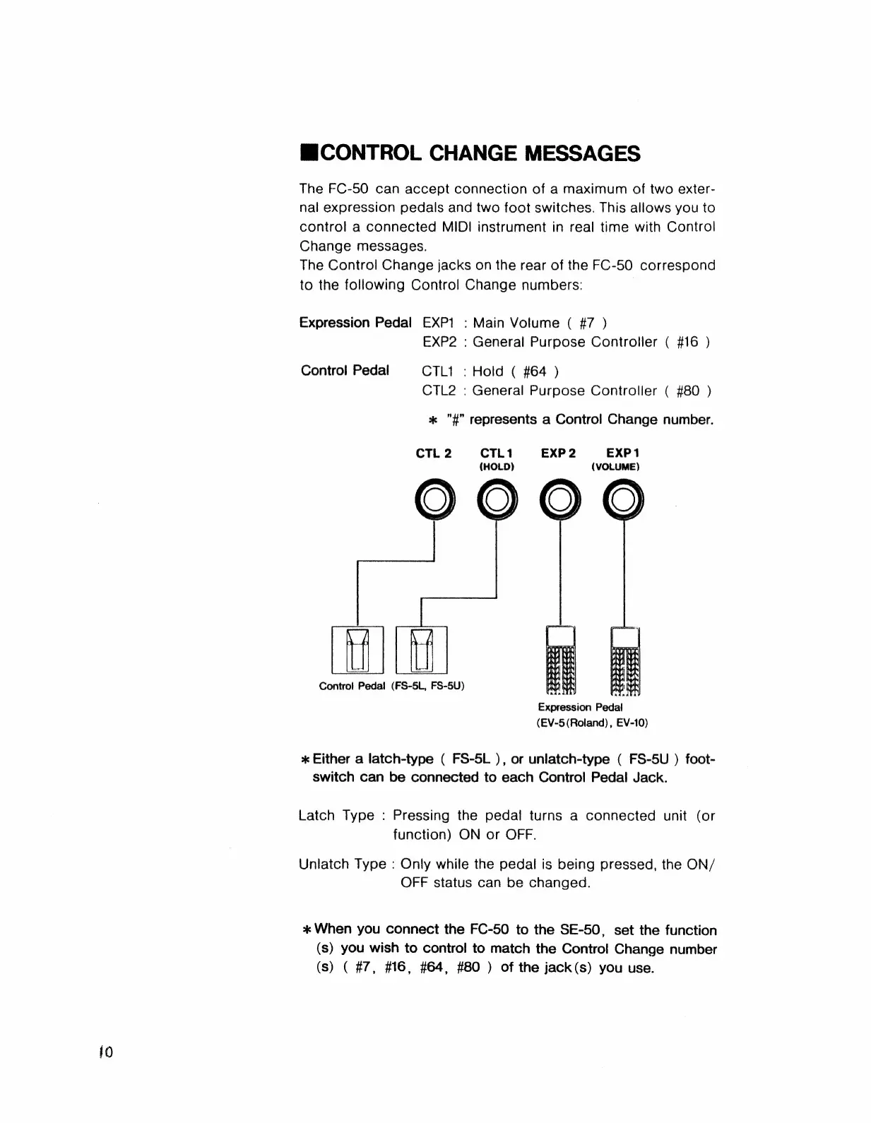 Boss FC-50 - Control Change Messages; Control Change Assignments; Pedal Type Information