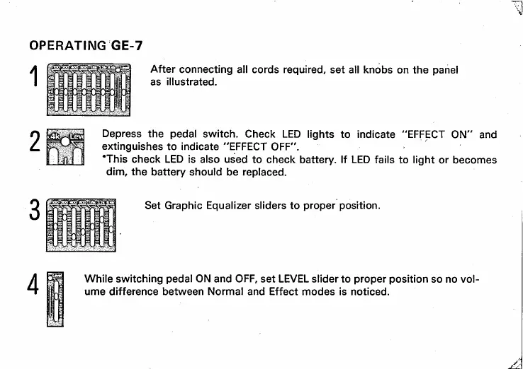 Boss GE-7 - Operating GE-7; Initial Setup and Knobs; Effect Activation; Slider Adjustment
