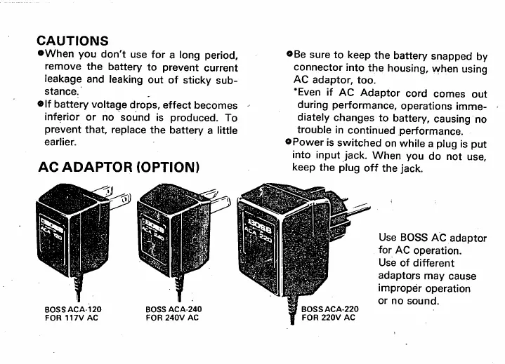 Boss GE-7 - Cautions; Storage and Battery; AC Adaptor Usage; Power Management
