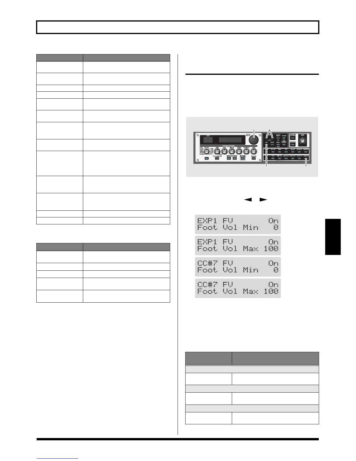 2. Press PARAMETER [ ] [ ] so that “EXP1 FV” or