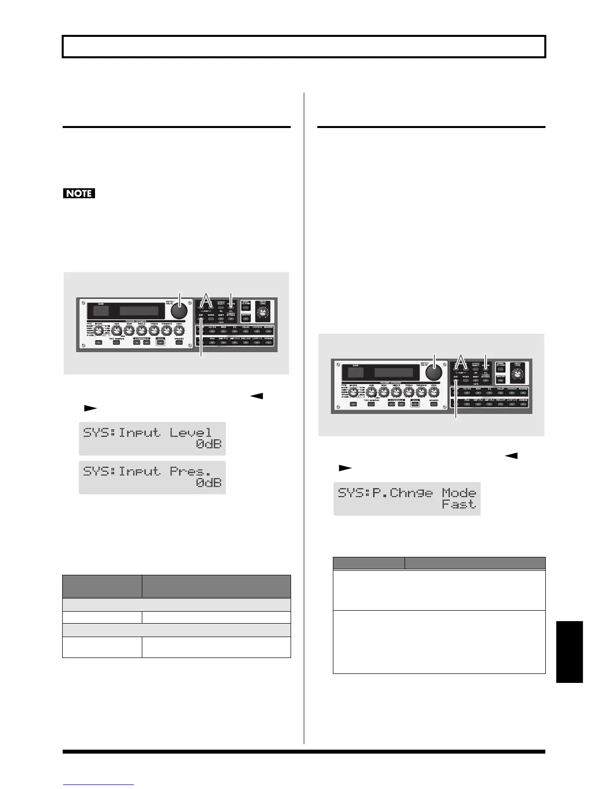 When adjusting the input level and input presence, the