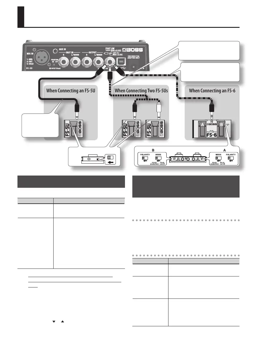 Connect your foot switch to the FOOT SW jack as shown in the illustration, and set its POLARITY switch.