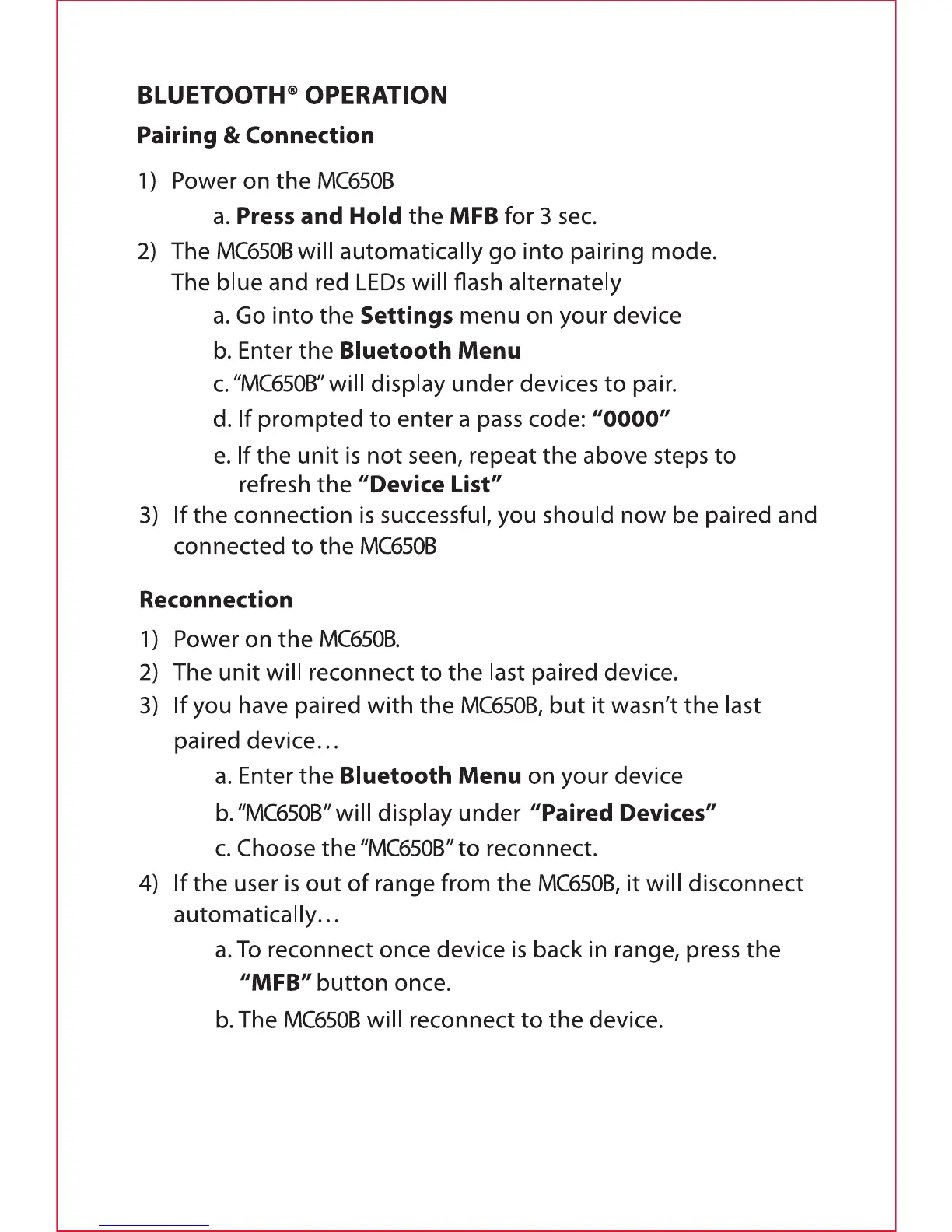 Boss MC650B - Bluetooth Operation; Pairing and Initial Connection; Reconnecting to Paired Devices