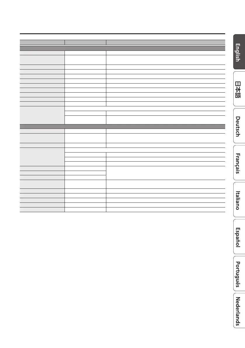 RATE (*1) 0.01–20.00 Hz Adjusts the rate of the chorus.