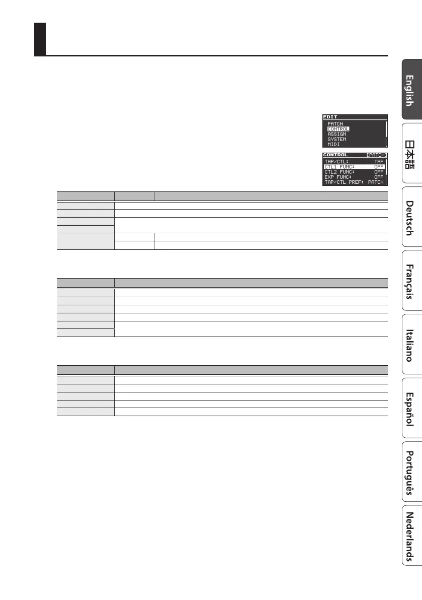 CTL 1/2 FUNC Species the function of a footswitch connected to the CTL 1,2/EXP jack.