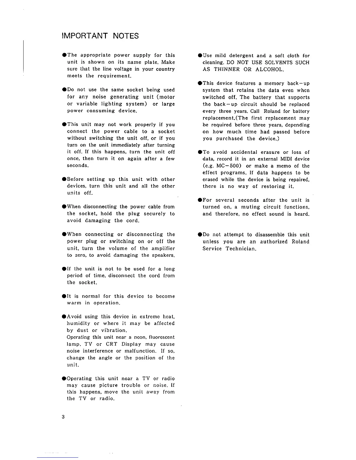 Boss ME-5 - IMPORTANT NOTES
