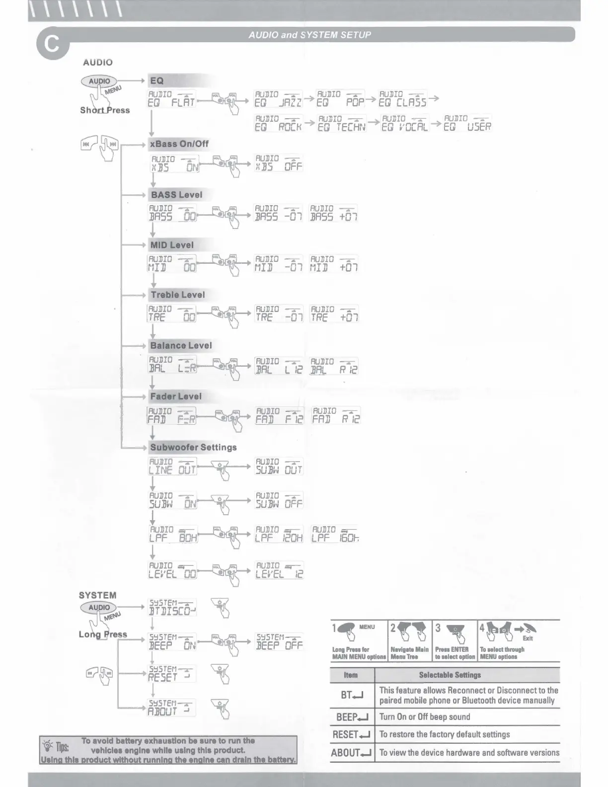 Boss MGR450B - Audio and System Setup; Audio Settings Adjustments; Subwoofer and System Settings