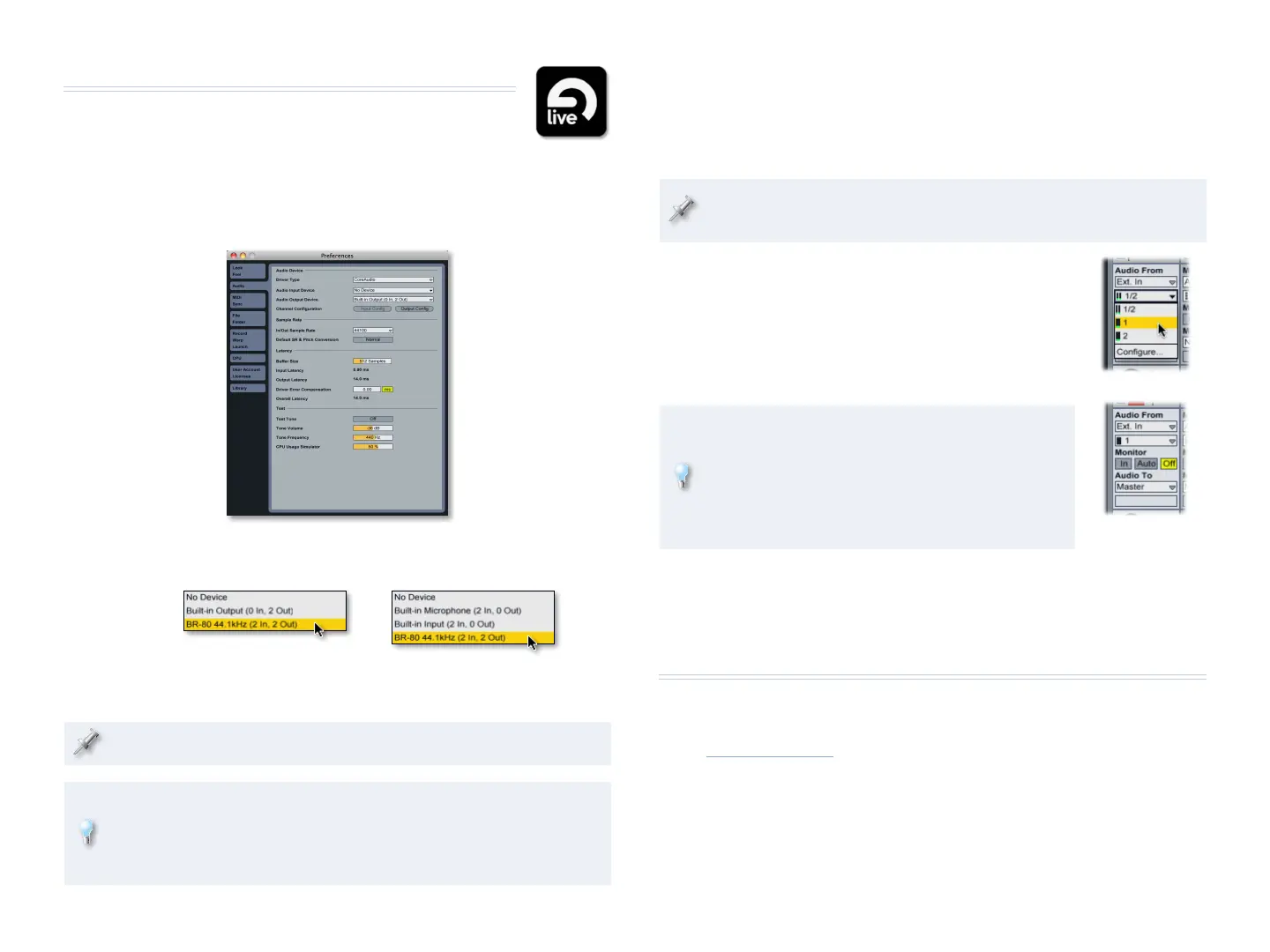1 From the Live menu, select Preferences... and click Audio along the