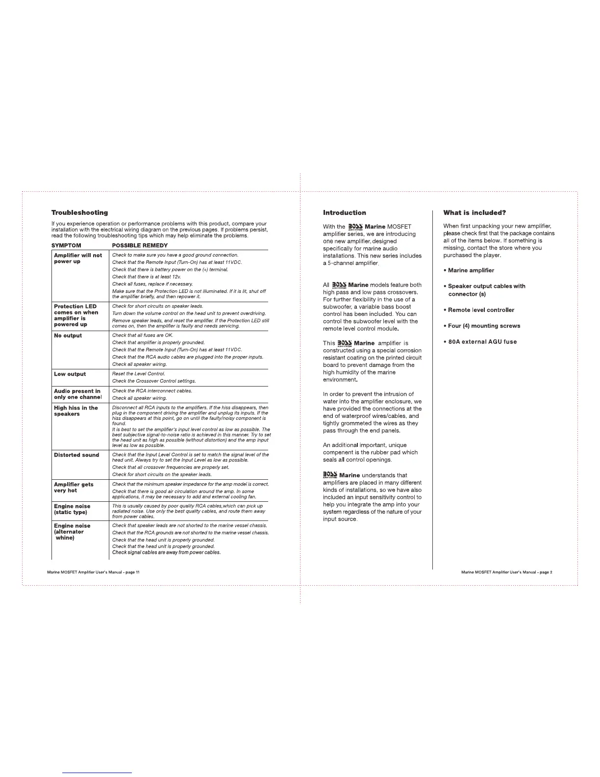 Boss MR1950 - Troubleshooting; Amplifier Will Not Power Up; Protection LED Issues; No Audio Output