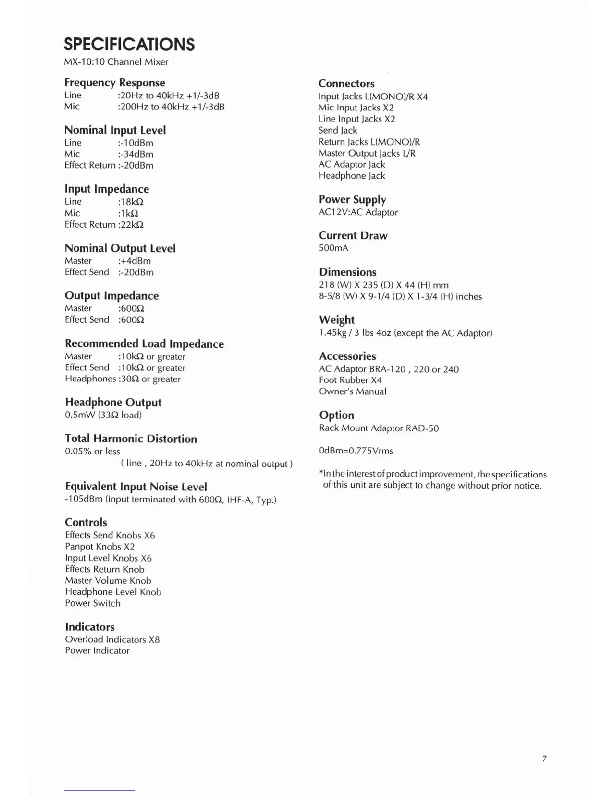 Boss MX-10 - SPECIFICATIONS