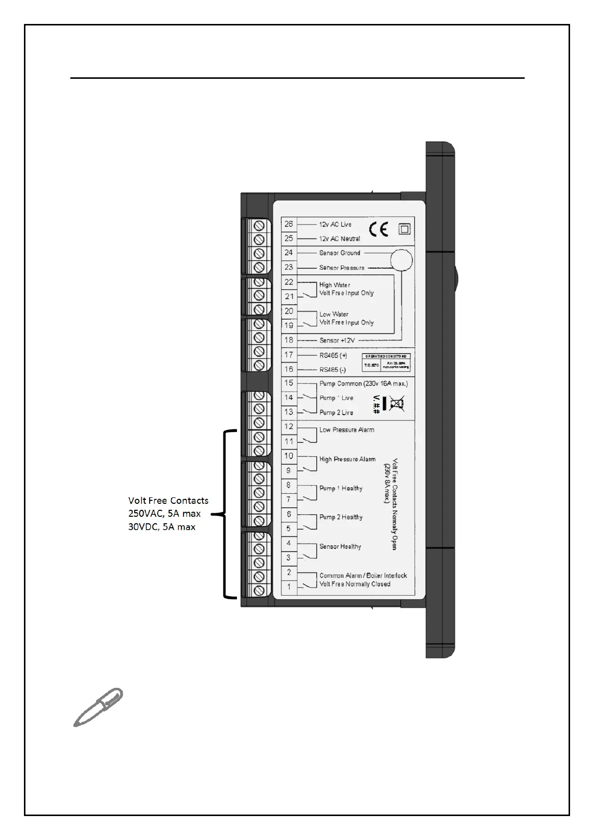There are 6 volt free fault contacts which can be used for connection to a BMS system, or as a boiler