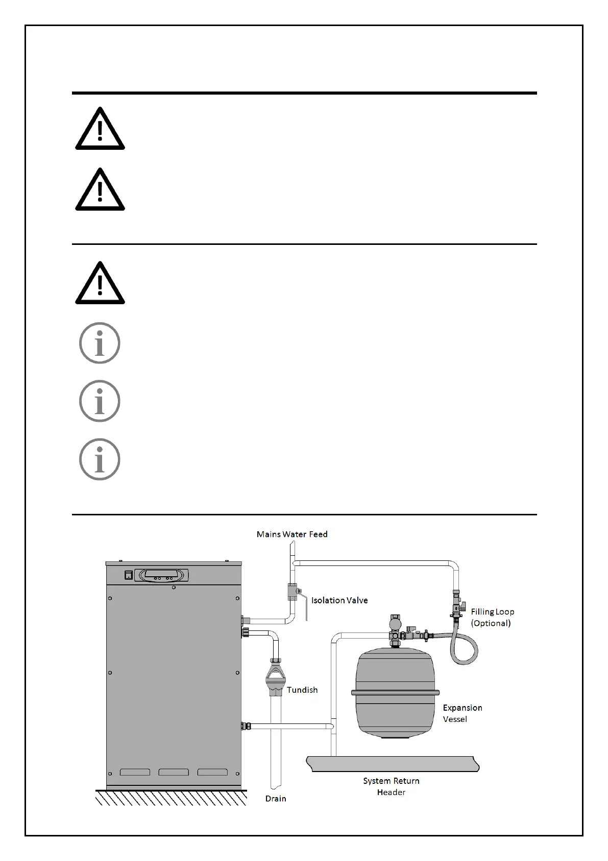 The pressurisation unit and expansion vessel should be connected to the system at the