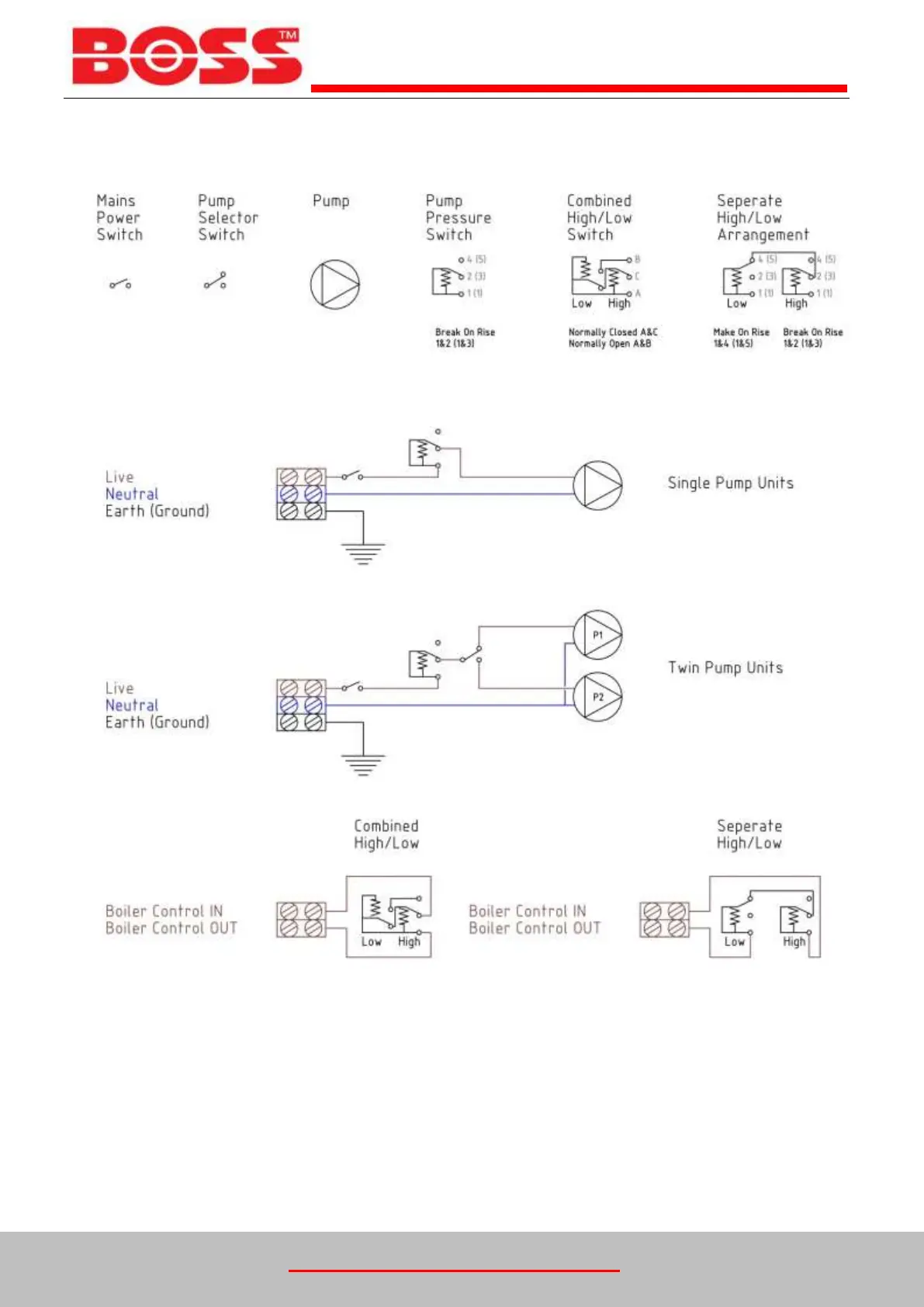 Boss MX1-3HL - Wiring Diagram; Single Pump Units Wiring; Twin Pump Units Wiring; Boiler Control Wiring