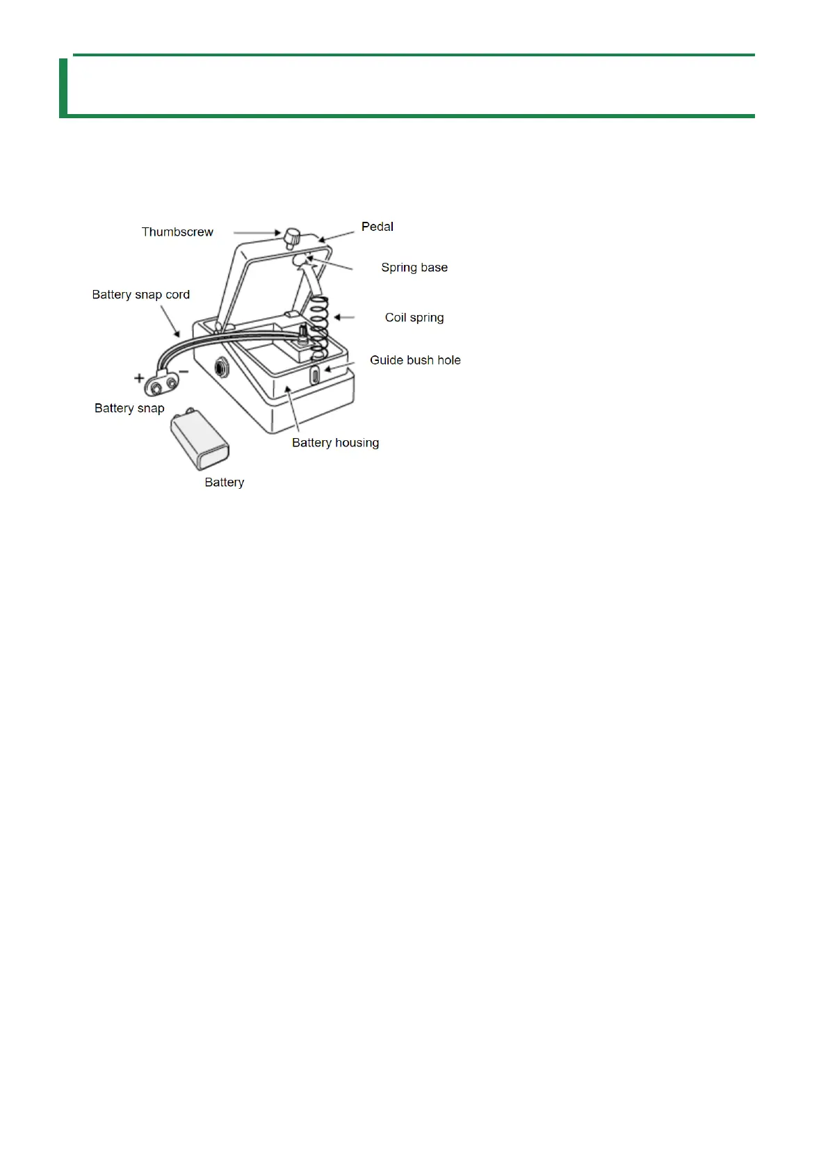 Carefully avoid getting the snap cord caught in the pedal, coil spring, and battery housing.