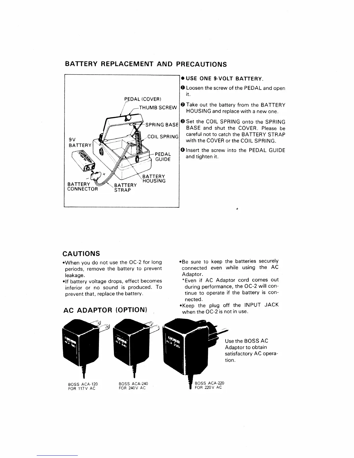 Boss OC-2 Octaver - Battery Replacement and Precautions; AC Adaptor (Option)