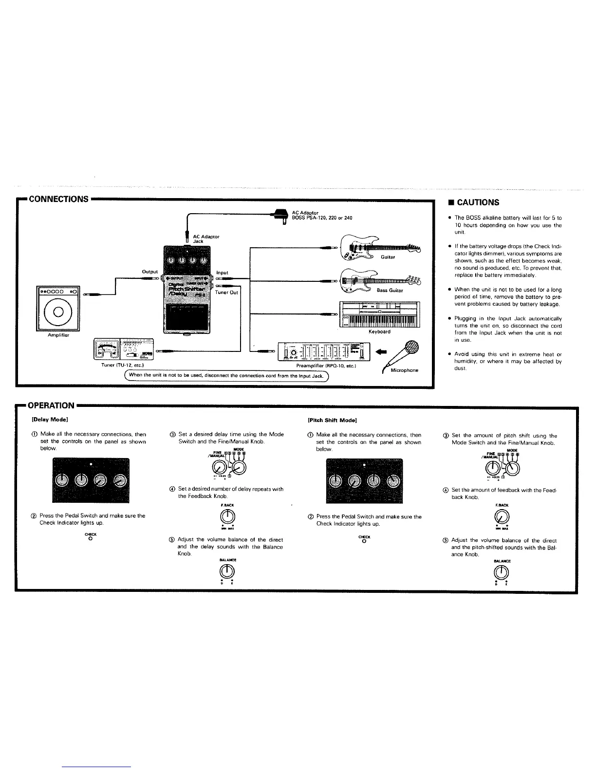 Boss PS-2 - Operation and Cautions; CONNECTIONS DIAGRAM; GENERAL CAUTIONS; OPERATION MODES