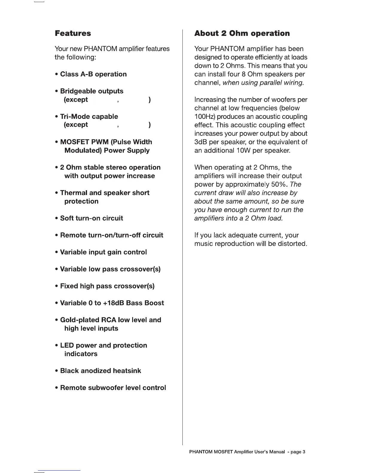 Boss PT1000 - Features; About 2 Ohm Operation