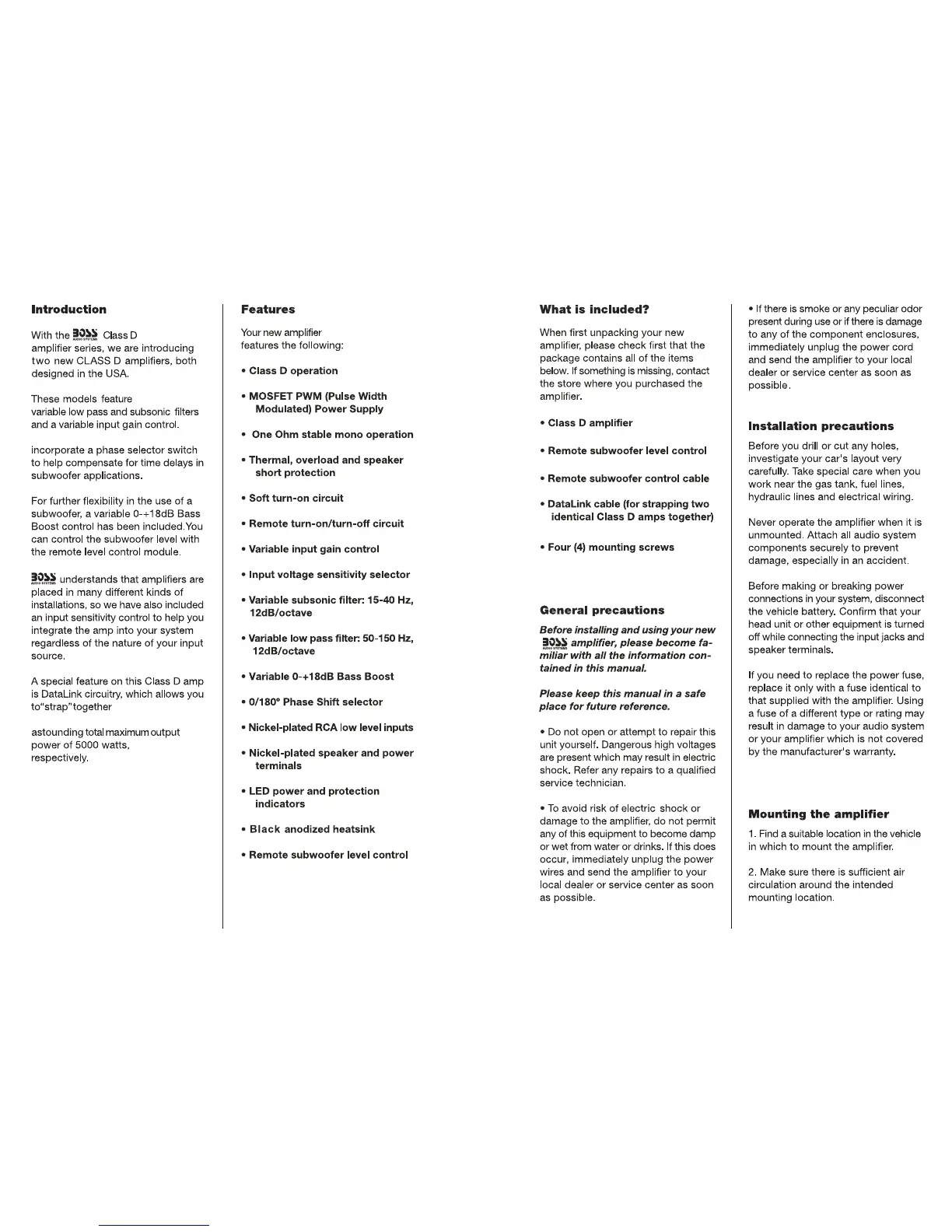 Boss R2400D - Introduction; Features; What is included?; General precautions