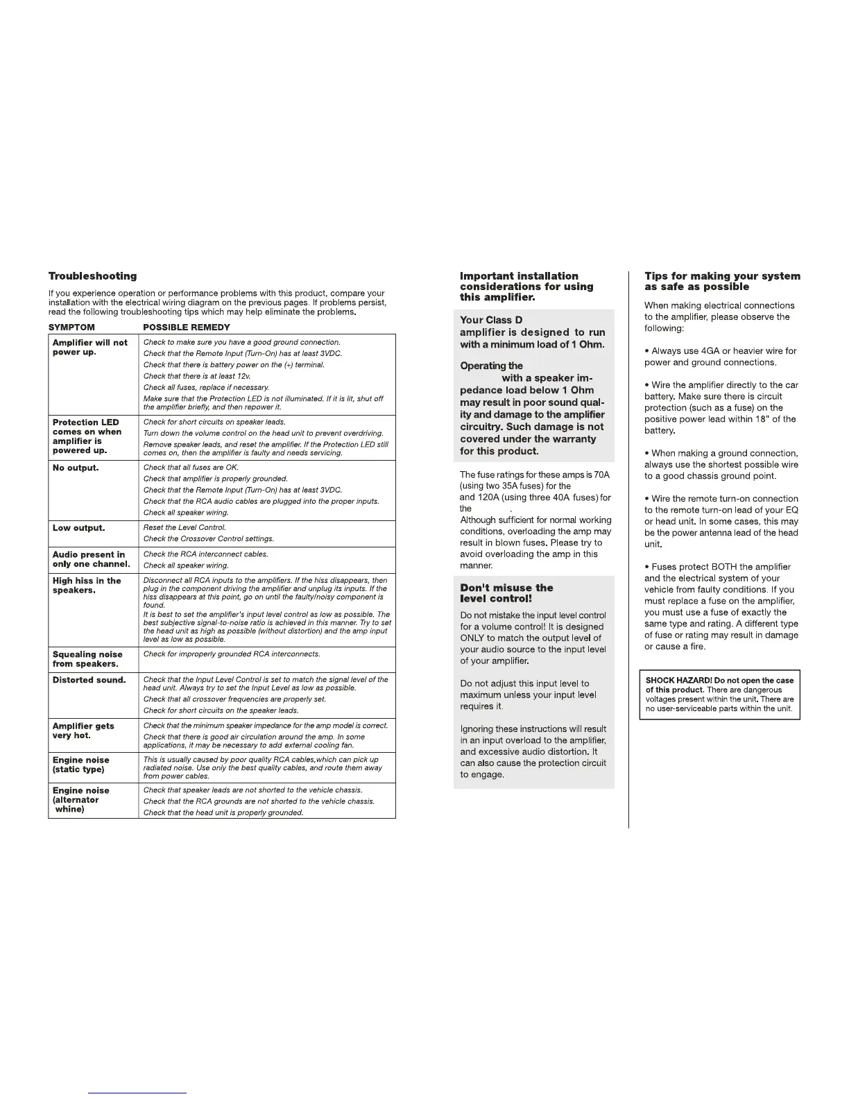 Boss R2400D - Troubleshooting; Important installation considerations for using this amplifier; Tips for making your system as safe as possible