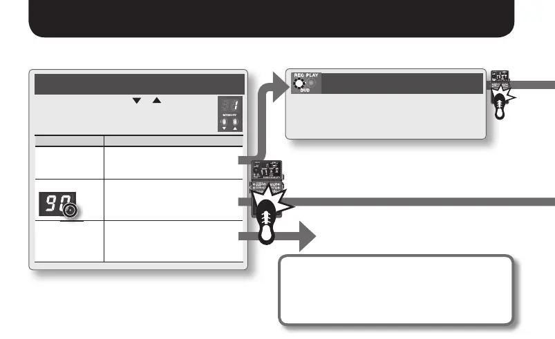 Drücken Sie das Pedal wie im Diagramm dargestellt, um eine Aufnahme, Overdubbing oder eine Wiedergabe auszuführen.