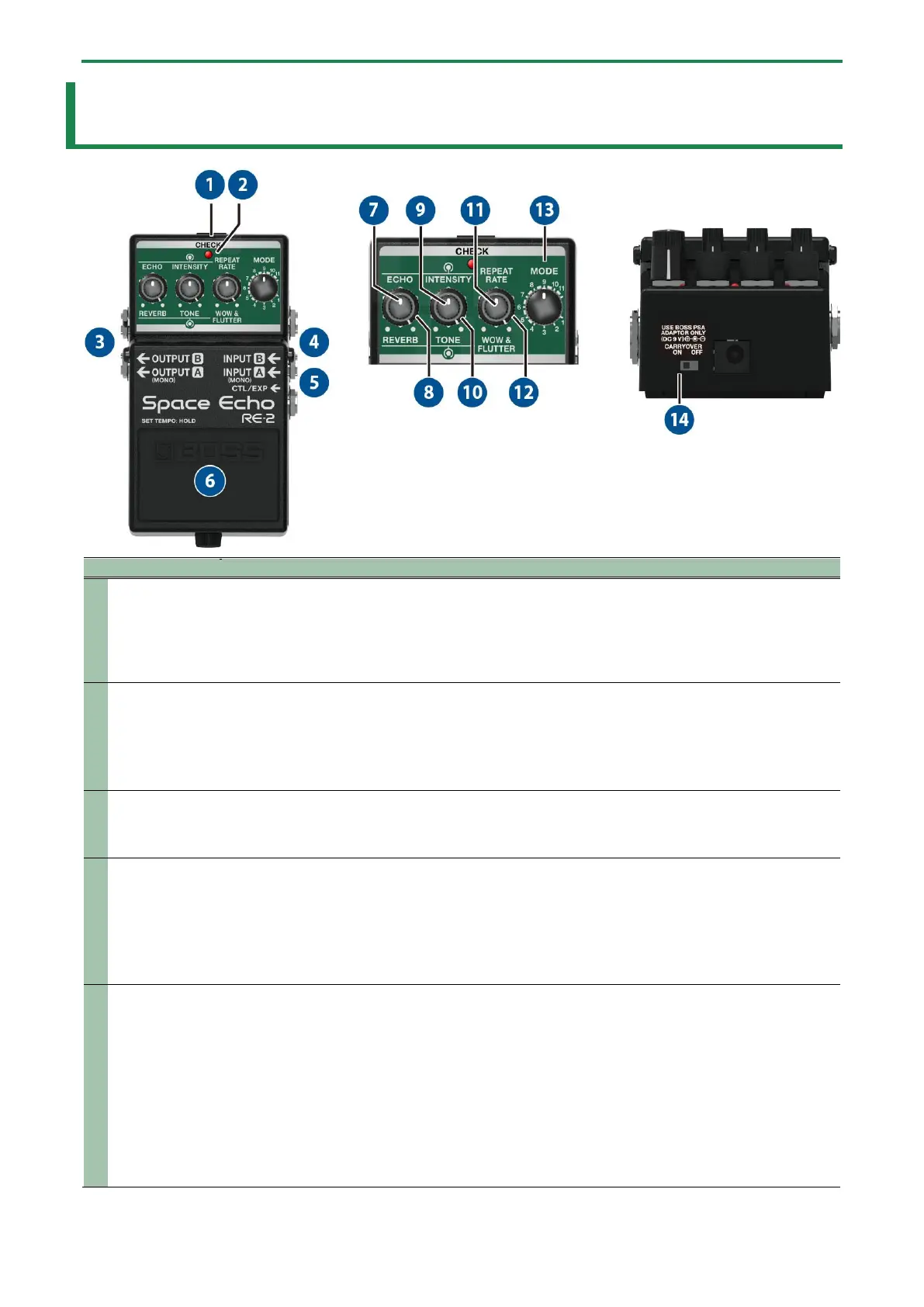 This indicator shows whether an effect is ON/OFF, and doubles as the Battery Check indicator.