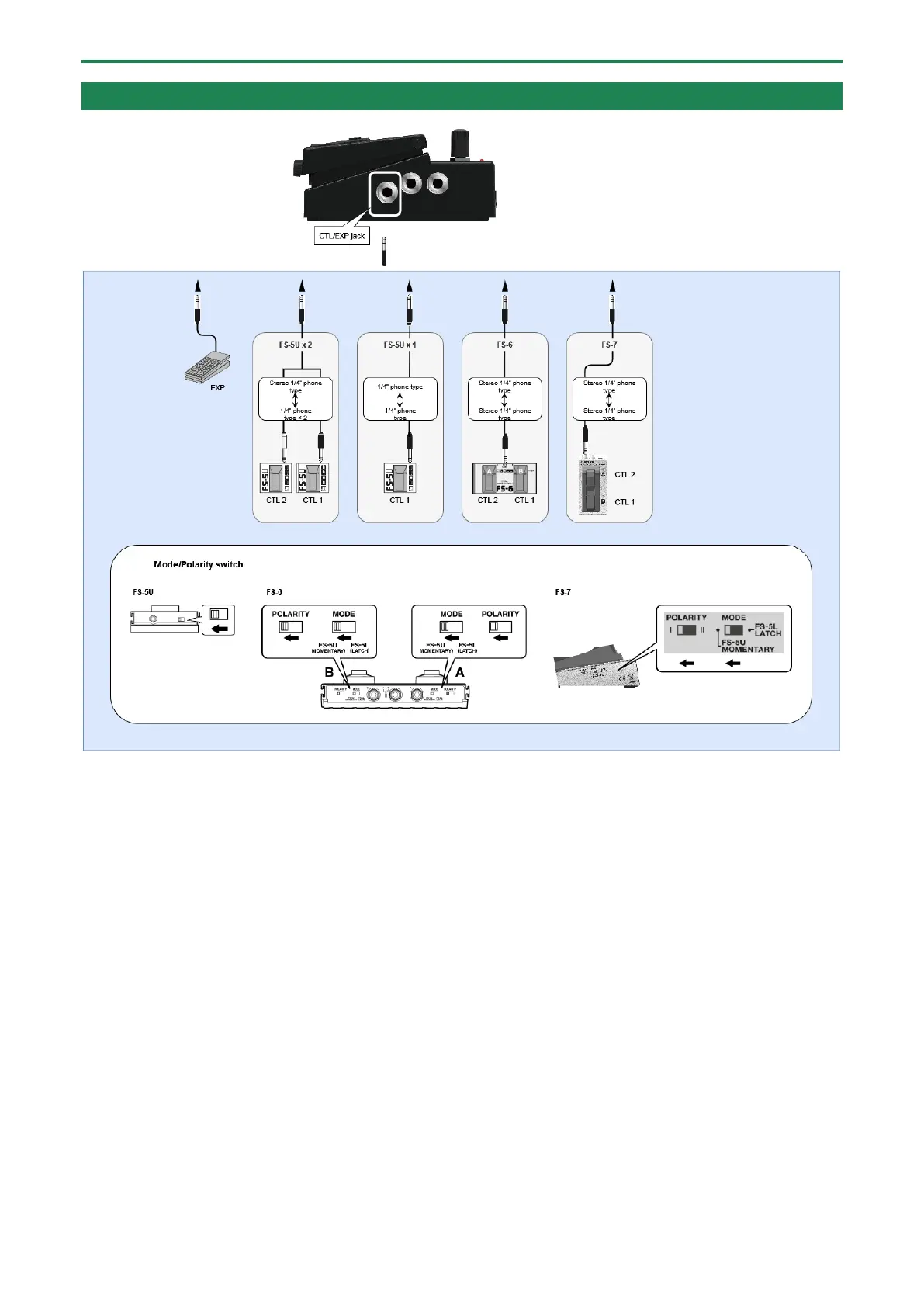Boss RE-2 - Connecting External Pedals; Footswitch Connections; Footswitch Mode and Polarity Settings