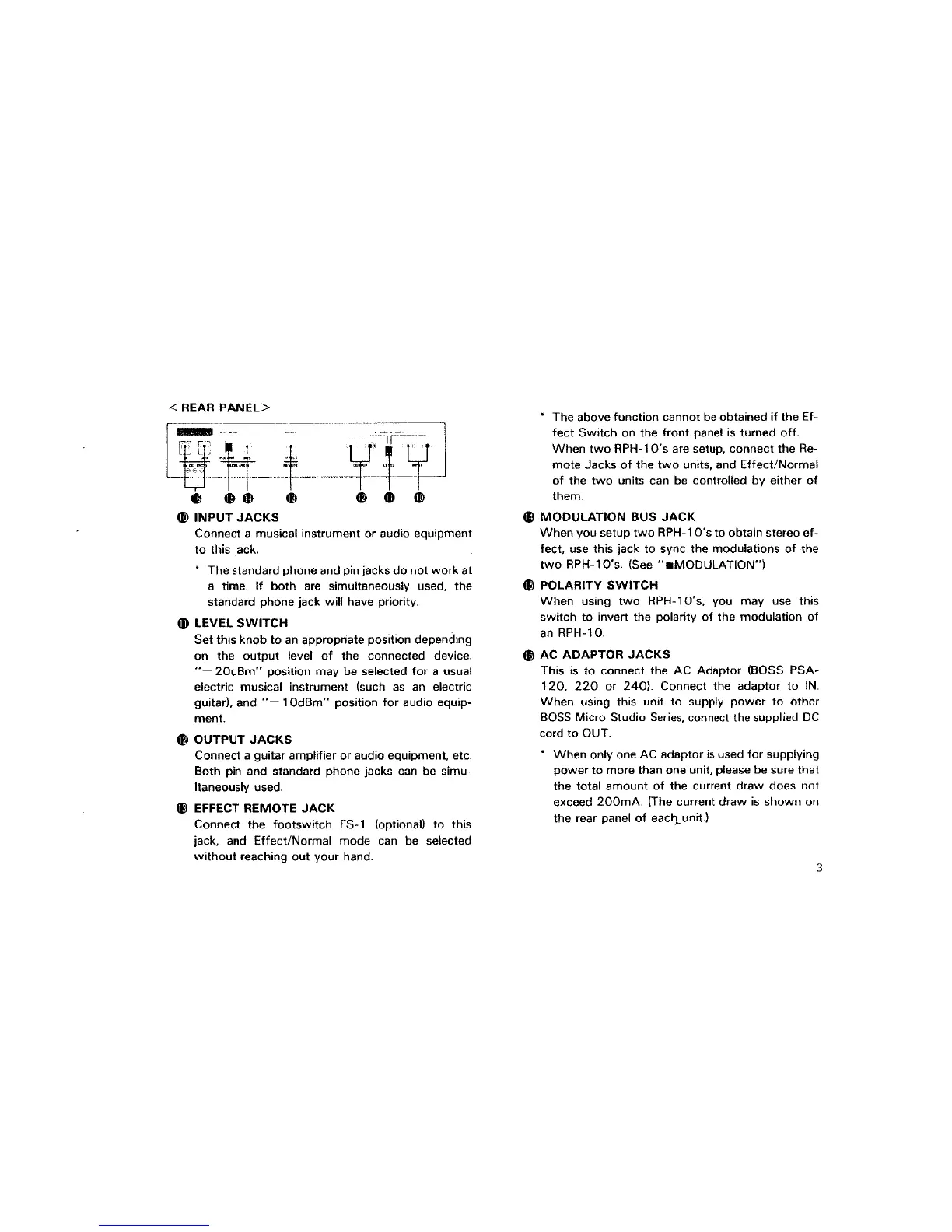 Boss RPH-10 - BOSS RPH-10 Rear Panel Controls; INPUT JACKS; LEVEL SWITCH; OUTPUT JACKS