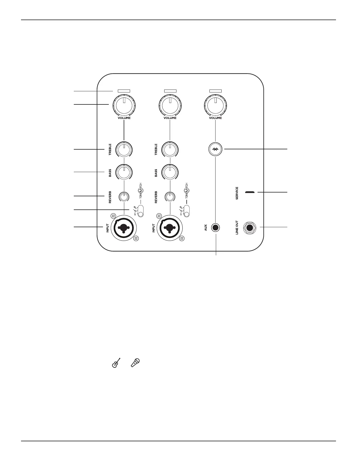 为麦克风和乐器使用通道 1 和 2 输入端。集成的
